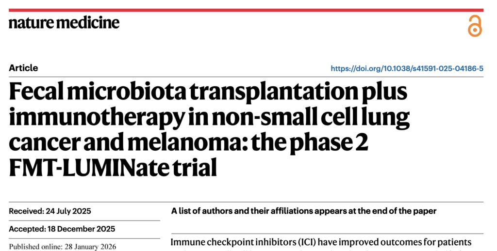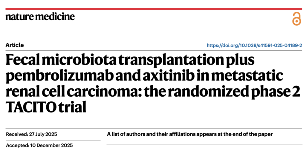 後の2編の論文はいずれも進行腎臓ガン患者さんが対象だが、カナダの第一相治験はPD-1とCTLA-4両方の併用、イタリアの第二相治験はPD-1抗体単独治療に対する便移植の効果を調べている。